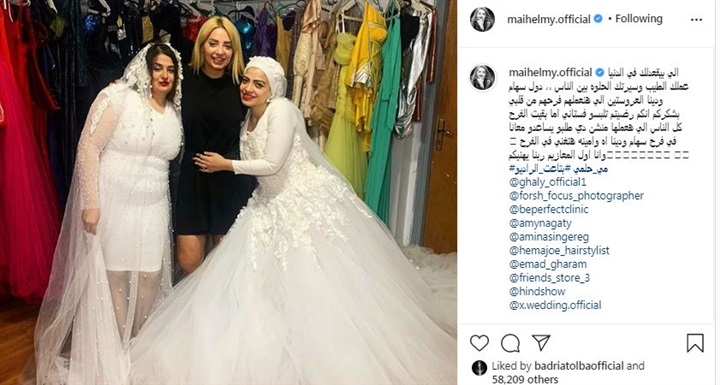 تبرعت الإعلامية مي حلمي بفستاني زفافها لعروستين، وقامت بتوجيه رسالة شكر لهم، وذلك من خلال حسابها الشخصي على موقع الصور والفيديوهات "إنستجرام".