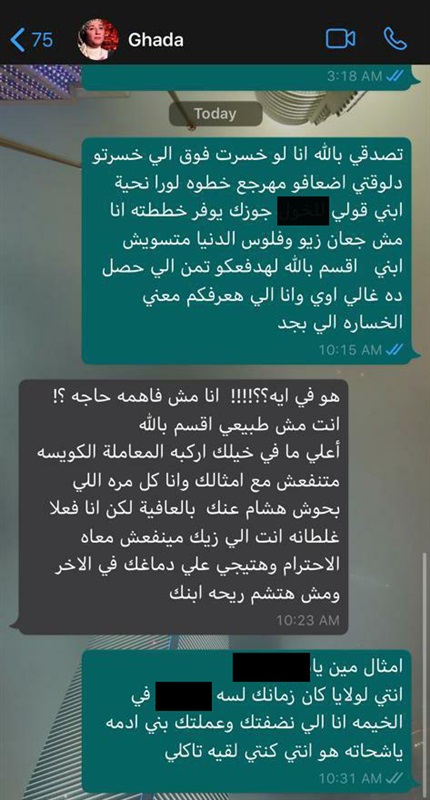 رسائل و شتائم تفضح غادة نجيب زوجة هشام عبد الله واشتعال قضية إثبات نسب ابنها | مستندات