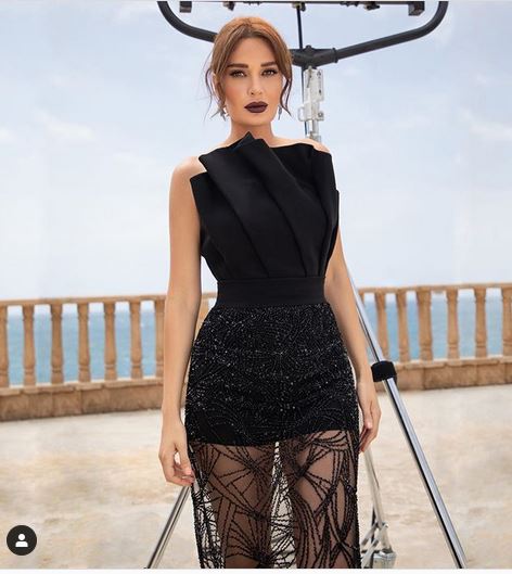 وأطلت بها سيرين عبد النور، بفستان طويل باللون الأسود، ويتميز بتفصلية لافته وانيقة تكشف عن جمالها ورشاقتها، كم يتميز بالتل الشفاف المطرز.