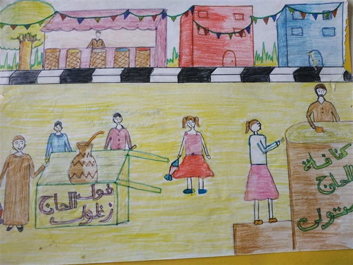 في مكتبة كفر حجازي الثقافية، استخدم الأطفال المشاركون في مرسم فني تحت عنوان "أهلا رمضان" أقلام الرصاص، وألوان الماء، والفلوماستر، لتقديم كروت تهنئة، تضمنت أشكال متعددة لفانوس رمضان، فيما عبر آخرون عن بزوغ هلال رمضان في سماء مصر.