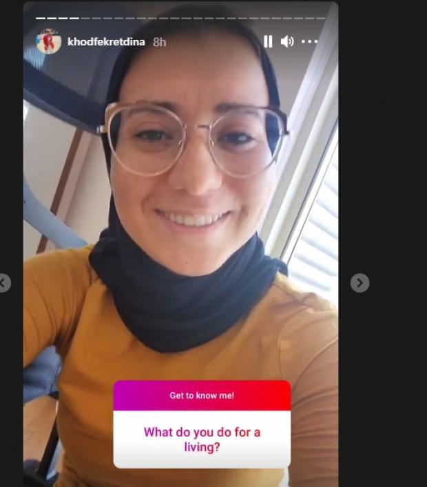 وظهرت «دينا»، دون آثار الحادث، مؤكدة أنها درست علم الحركة، وتعمل خبيرة مكياج، فضلًا عن تخصصها في تقنيات الليزر، معربة عن هواياتها وهي السباحة، والتسلق، والموسيقى وغيرها.