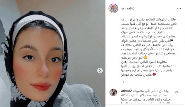 أصبحت «رانيا» مادة خصبة للتنمر لملايين من الرواد والمتابعين، التي تحدثت عنه خلال منشور دونته عبر حسابها على موقع تبادل الصور والفيديوهات «إنستجرام»، قائلة: «علشان الناس إللي مش فاهمة أي حاجة وبتيجي تكتب كومنت وخلاص وتقول بتعملي كدا استعطاف وشهرة وكلام مقرف زيهم أول حاجة أنا ظاهرة على السوشيال ميديا مش علشان أكون بلوجر، مش علشان أكون مشهورة، مش علشان الكلام الفاضي، ده أنا موجودة على السوشيال ميديا علشان أوصل رسالة واحدة بس للناس إللي فاقدين حاجة ومش قادرين يتعايشو معاها».