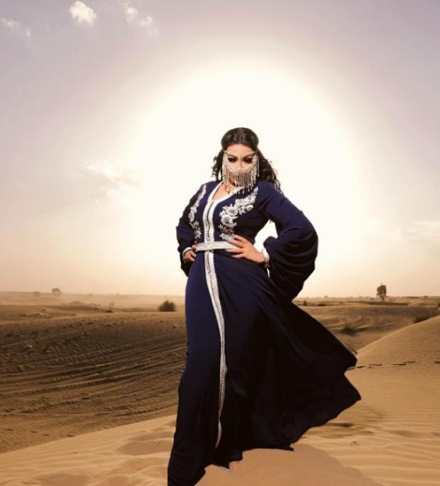 ونشرت الفنانة سمية الخشاب، عدة صور فوتوغرافية ومقاطع فيديو، من جلسة التصوير التي خضعت لها على رمال الصحراء، والتي ظهرت حافية القدمين، ومرتدية قفطانا باللون الأزرق مائلا للبنفسجي وبه نقوش مزركشة باللون الأبيض، فضلا عن ارتداء يشمك باللون الذهبي.