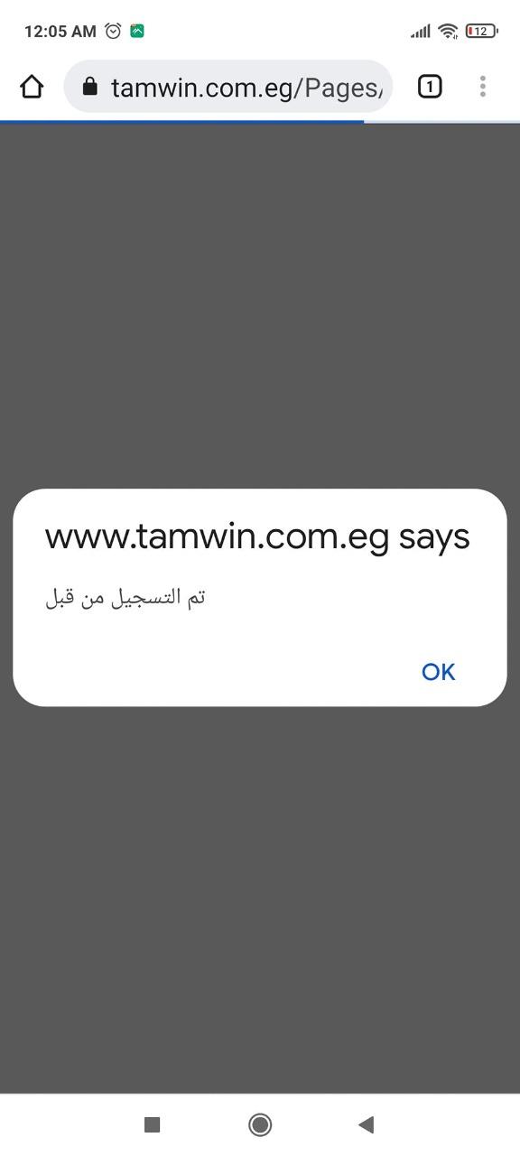 - في حالة عدم القبول ستظهر رسالة (برجاء إدخال رقم محمول مسجل باسم رب الأسرة).