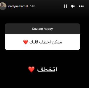 ثم قام أحد متابعيها بكتابة: "ممكن أخطف قلبك" وردت ندى: "اتخطف"، فوجه لها متابع آخر سؤال: "طب لما إنتي مبسوطة كده أومال هو يعمل إيه"، فردت: "مبسوط بس نام بدري".