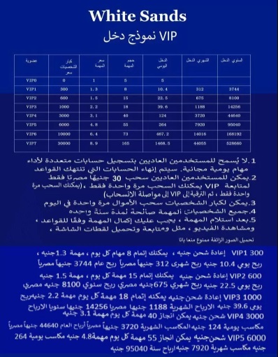 يذكر أن تطبيق "الرمال البيضاء"، نجح في ضم 6 ملايين مشترك، حيث ترواحت قيمة الأموال التي جمعها مديري التطبيق من اشتراكات المستخدمين ما بين 3 و5 مليار جنيه مصر.
