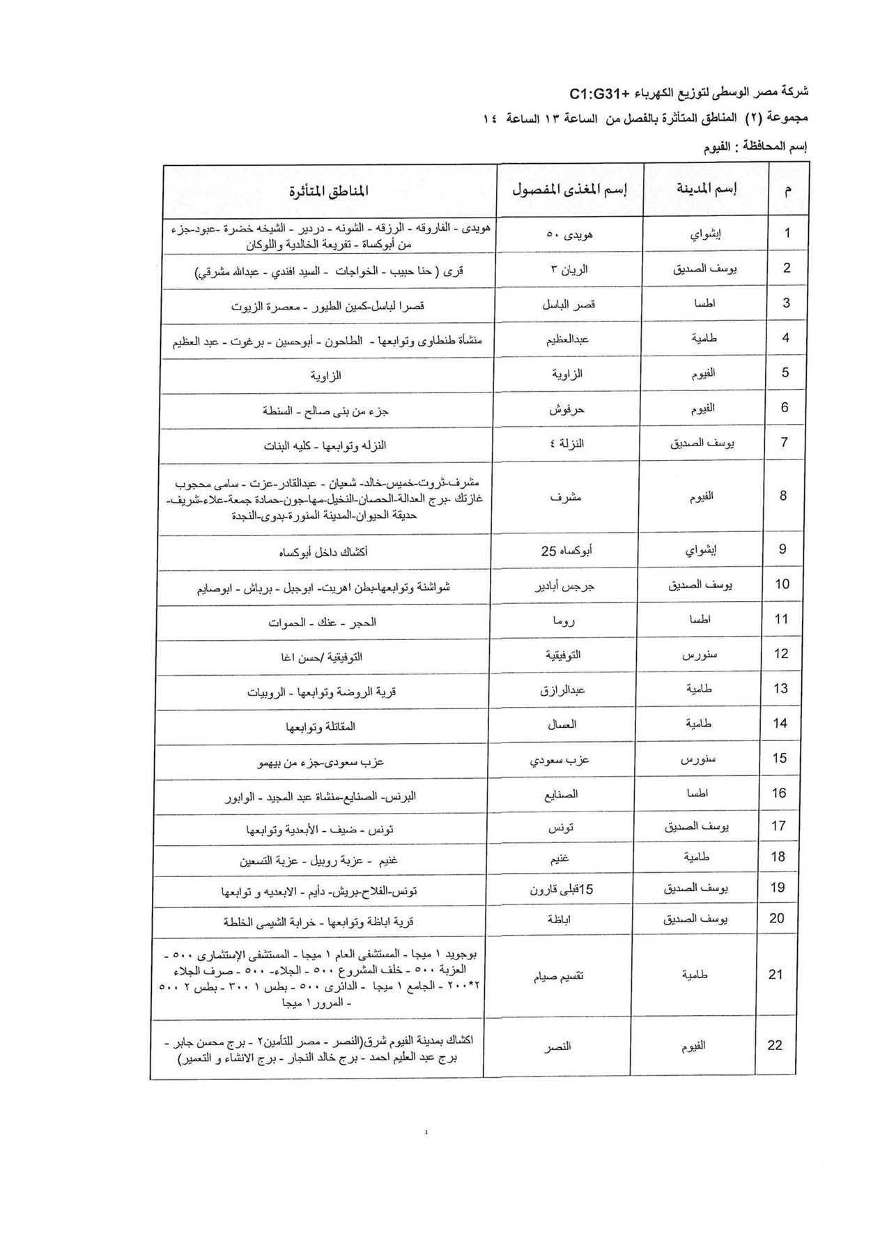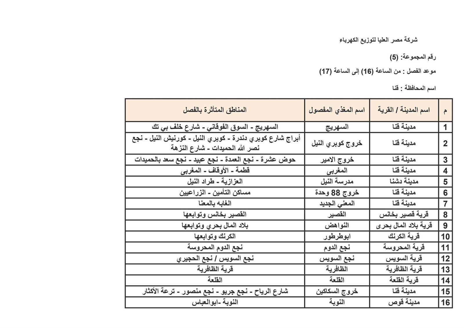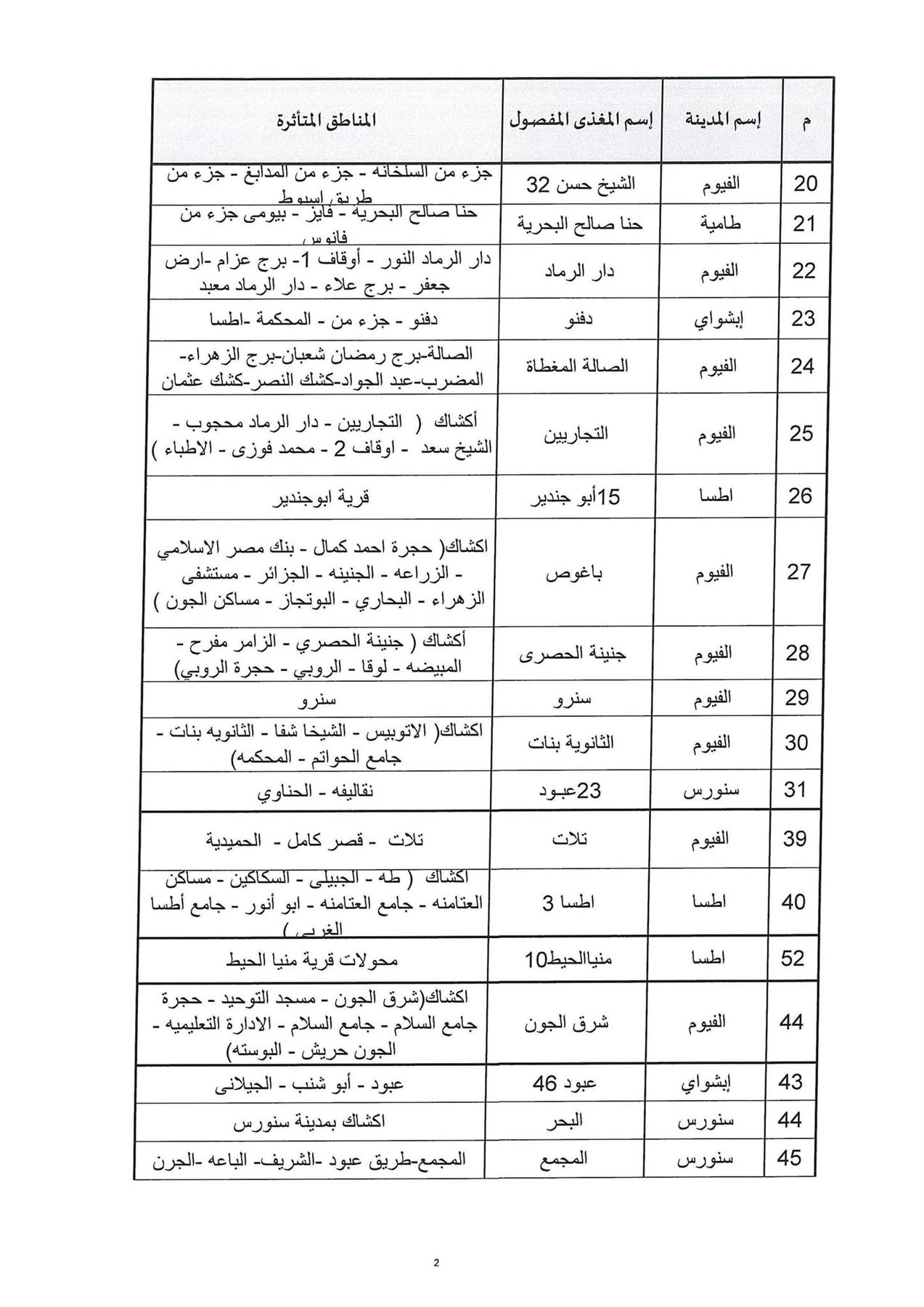يبدأ الثلاثاء 12 ظهرا.. جدول قطع الكهرباء بالمحافظات ومواعيد غلق المحلات والكافيهات