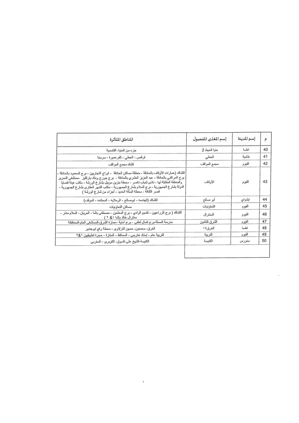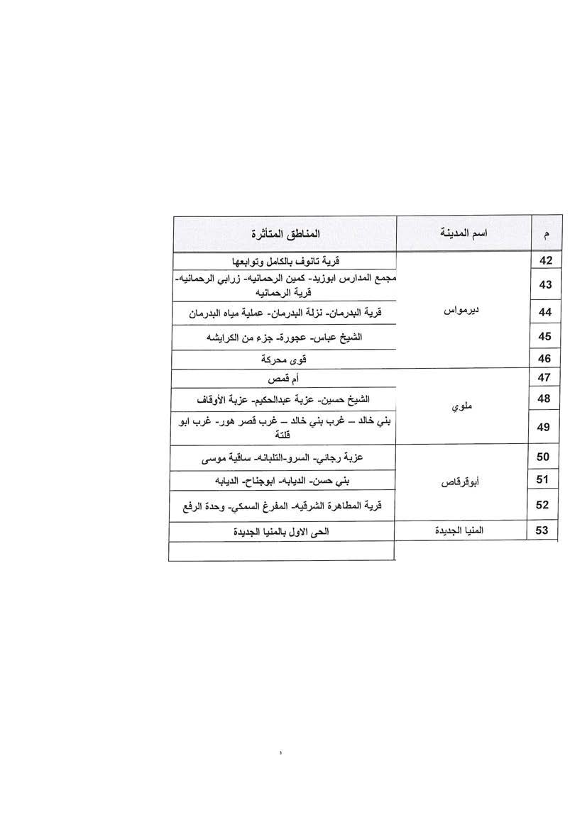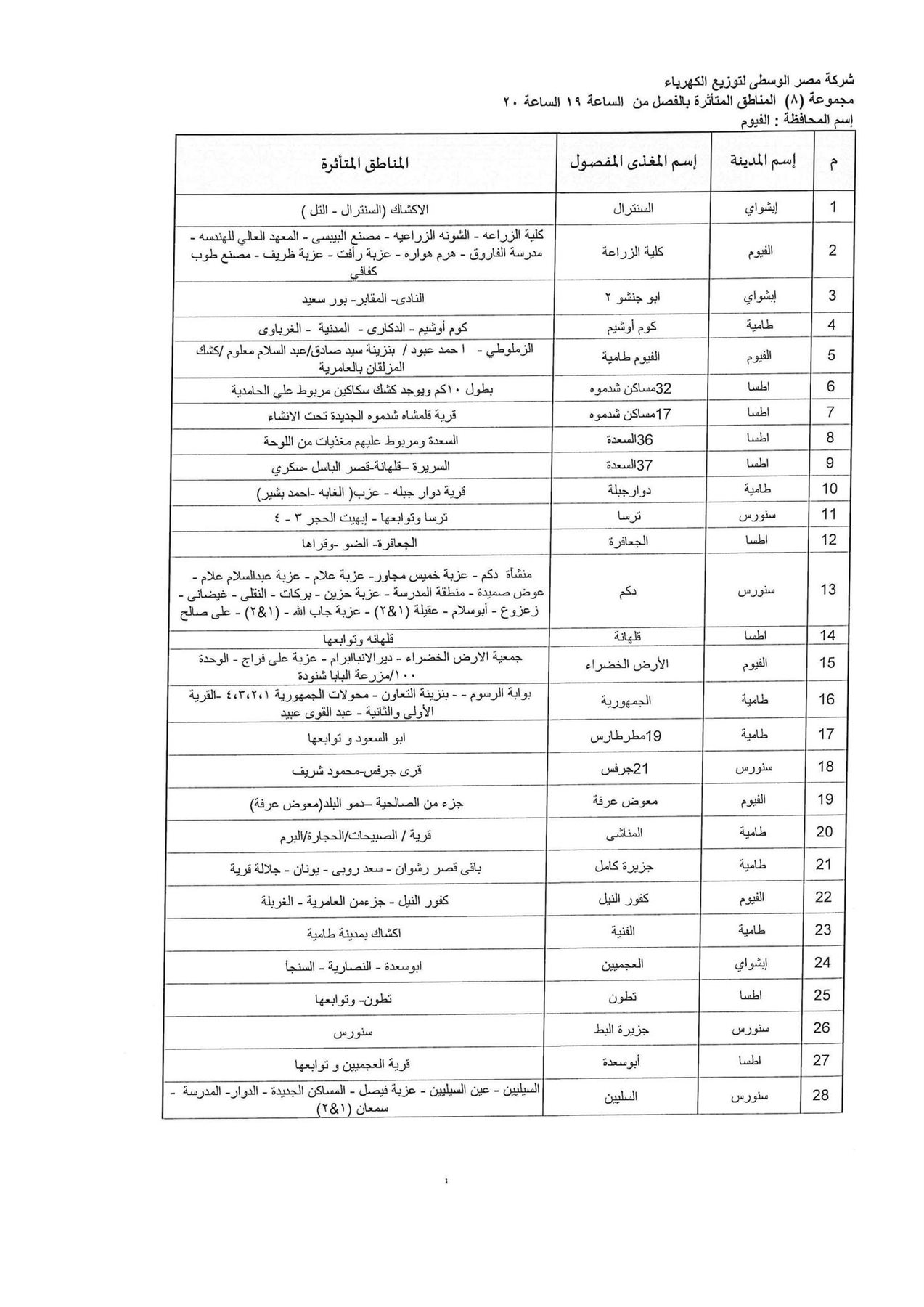 يبدأ الثلاثاء 12 ظهرا.. جدول قطع الكهرباء بالمحافظات ومواعيد غلق المحلات والكافيهات