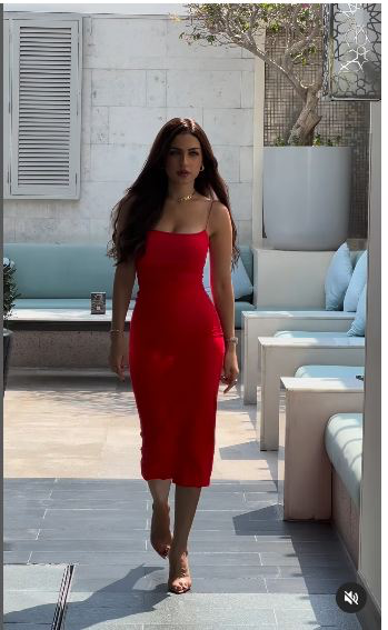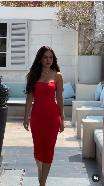 تألقت ياسمين عز في الفيديو بإطلالة ملفتة، حيث ارتدت فستان متوسط الطول وذا أكمام مكشوفة واتسم التصميم باللون الأحمر الذي لا يحمل أي نقوشات أو تطريزات.