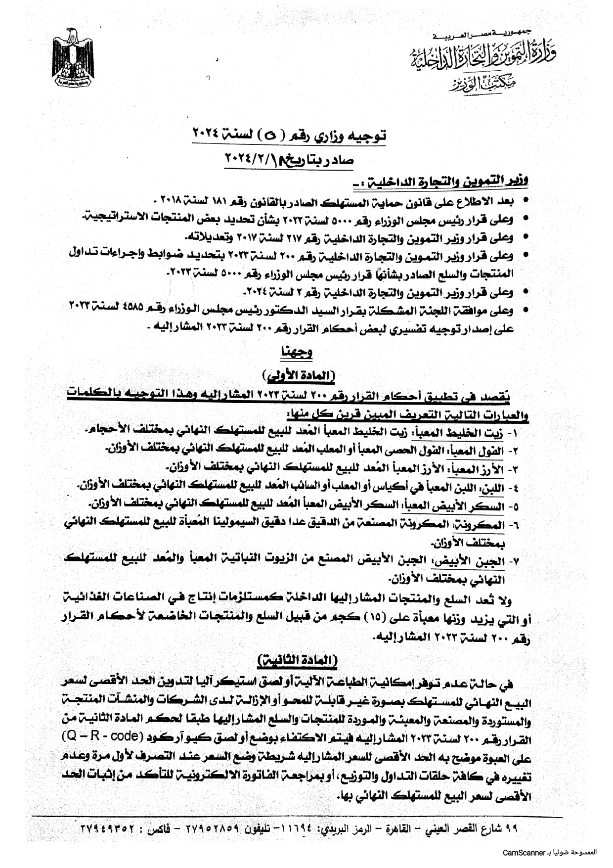 تلتزم كافة نقاط العرض والبيع للمستهلك النهائي بعرض سعر البيع للمستهلك النهائي على الأرفف تحت كل منتج أو سلعة أو لصق استيكر عليها بحرية تامة بشرط عدم تجاوز السعر المعروض الحد الأقصى لسعر البيع النهائي للمستهلك المحدد من قبل الشركات والمنشآت المنتجة والمستوردة والمصنعة والمعبئة والموردة للمنتجات والسلع، مع إمكانية التحقق من ذلك من خلال الاطلاع على الفاتورة الإلكترونية أو نسختها الصادرة من الفئات المخاطبة بالقرار رقم ٢٠٠ لسنة ٢٠٣٣.