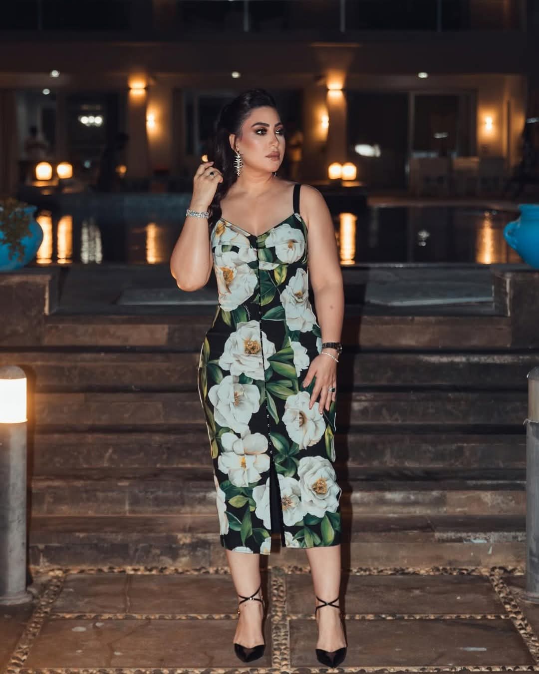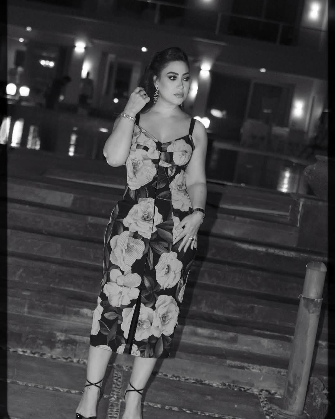 خطفت الفنانة بوسي الأنظار خلال حضورها إحدى السهرات الخاصة، بإطلالة أنيقة وجريئة تجمع بين الأنوثة والفخامة، حيث ارتدت فستانًا طويلًا ومجسمًا باللون الأسود، تزيّنه طبعة ورود بيضاء بارزة مع أوراق خضراء، ما أضفى لمسة صيفية منعشة على الإطلالة.