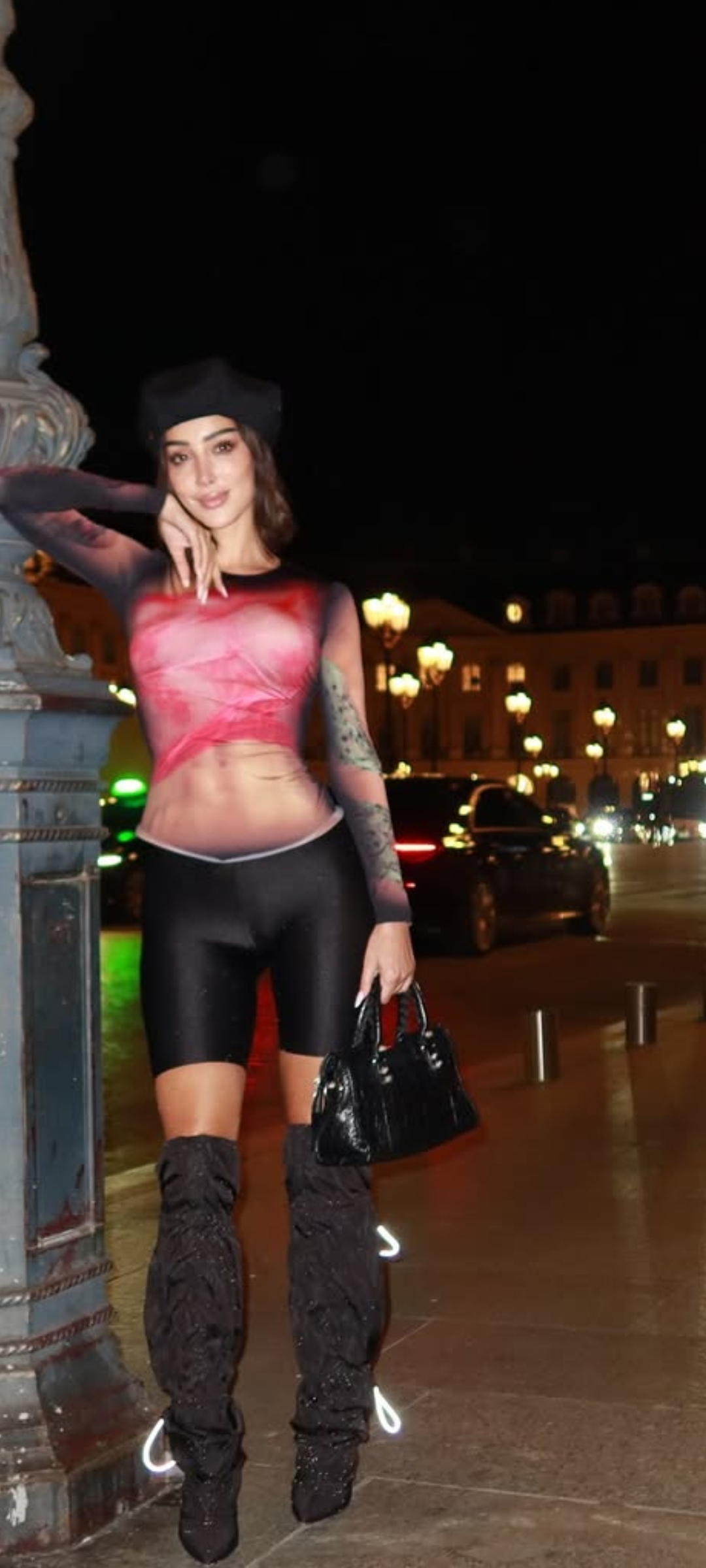 وظهرت بسمة بوسيل، مرتدية شورت باللون الاسود، ونسقت معه توب ذا تصميم مختلف ليكشف عن جمالها ورشاقتها.