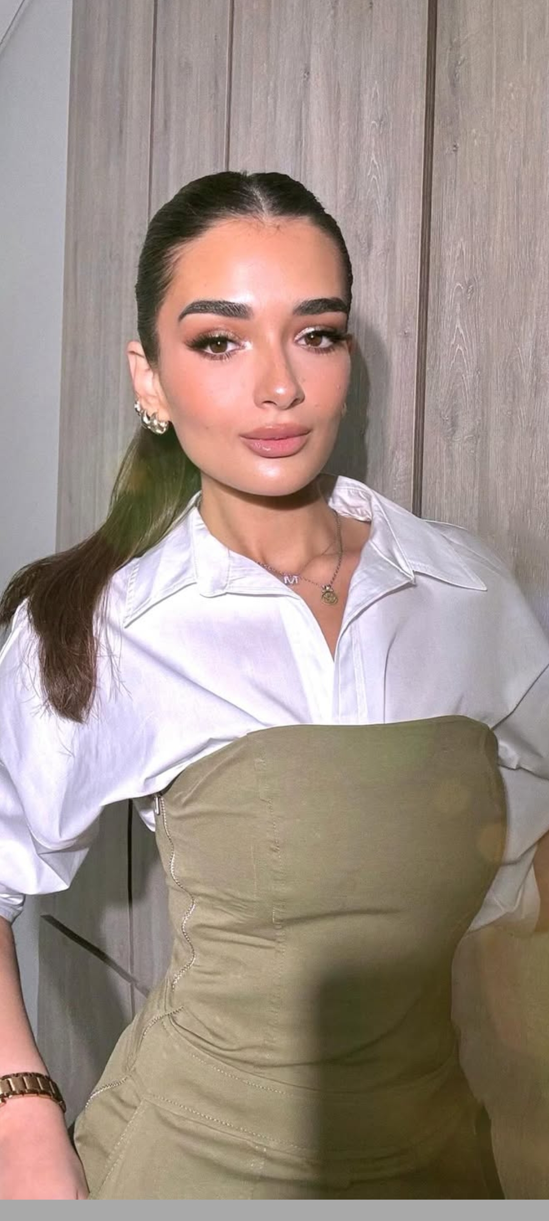 وظهرت ملك أحمد زاهر، مرتديه جمبسوت كاجوال باللون الزيتي، ونسقت معه قميص بسيط باللون الابيض ليكشف عن جمالها ورشاقتها.