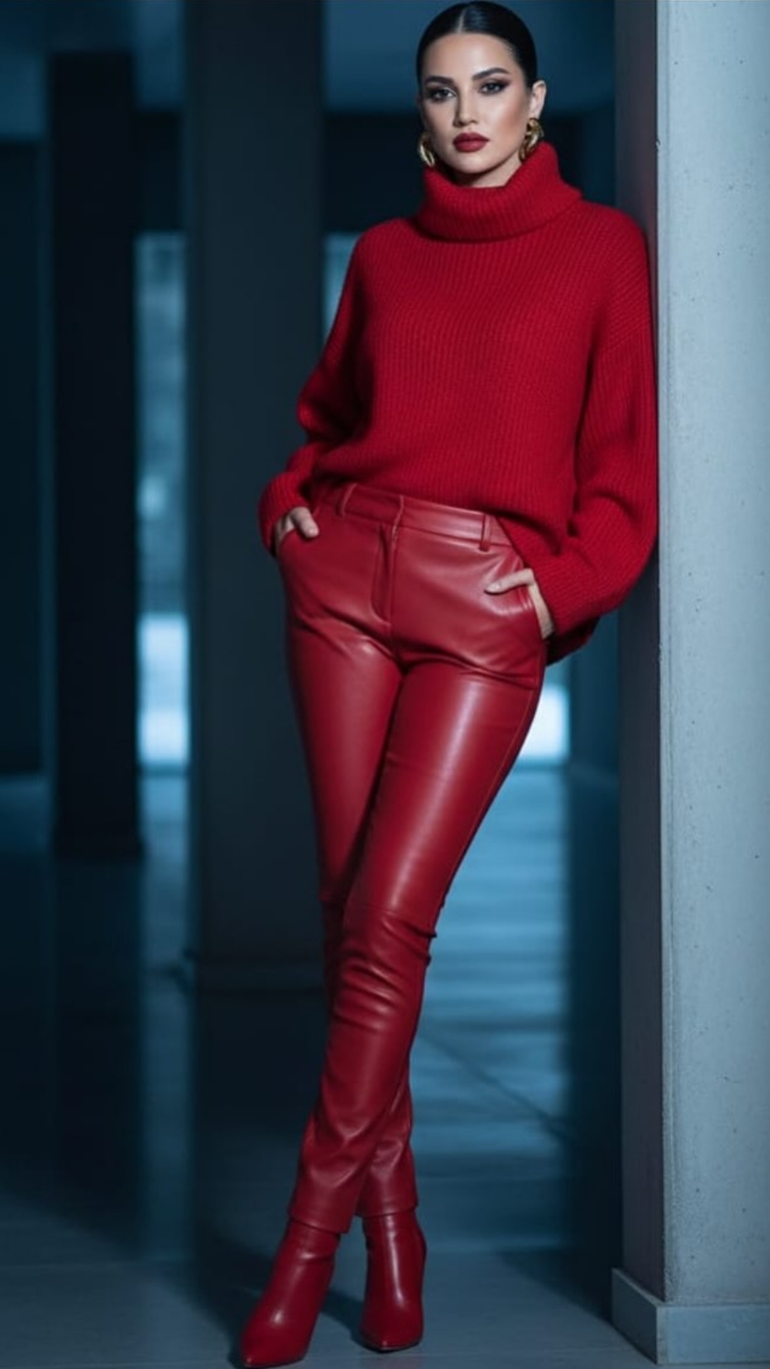 وظهرت درة، مرتدية بنطالا من الجلد باللون الأحمر، ونسقت معه بلوفر باللون الأحمر؛ ليكشف عن جمالها ورشاقتها.