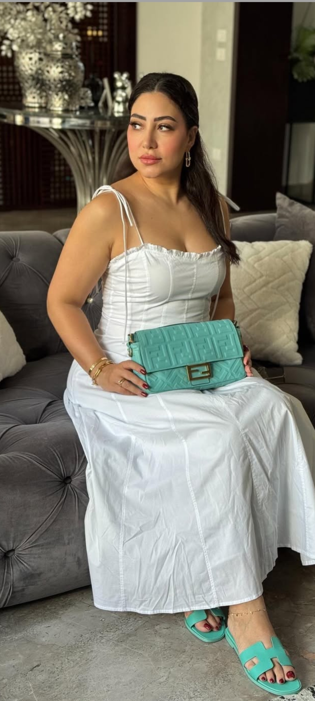 وتألقت بوسي، مرتديه فستان كاجوال باللون الأبيض، وجاء الفستان بتصميم بسيط وناعم ليكشف عن جمالها ورشاقتها، وأكملت إطلالتها مرتديه حقيبة وحذاء باللون اللبني ليضيف لمسه مختلفة لإطلالتها.