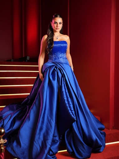 وظهرت الفنانة درة بإطلالة أميرية جذابة، حيث تألقت بفستان فاخر من تصميم صوفي كوتور باللون الأزرق الأنيق وبدون أكمام، تميز الجزء العلوي منه بلمعانه اللافت، بينما جاء الجزء السفلي بثنيات على شكل وردة تضفي عليه لمسة من الرقي والجمال. ويبلغ سعر الفستان نحو 4700 دولار، أي ما يعادل 223 ألفًا و626 جنيهًا مصريًا.