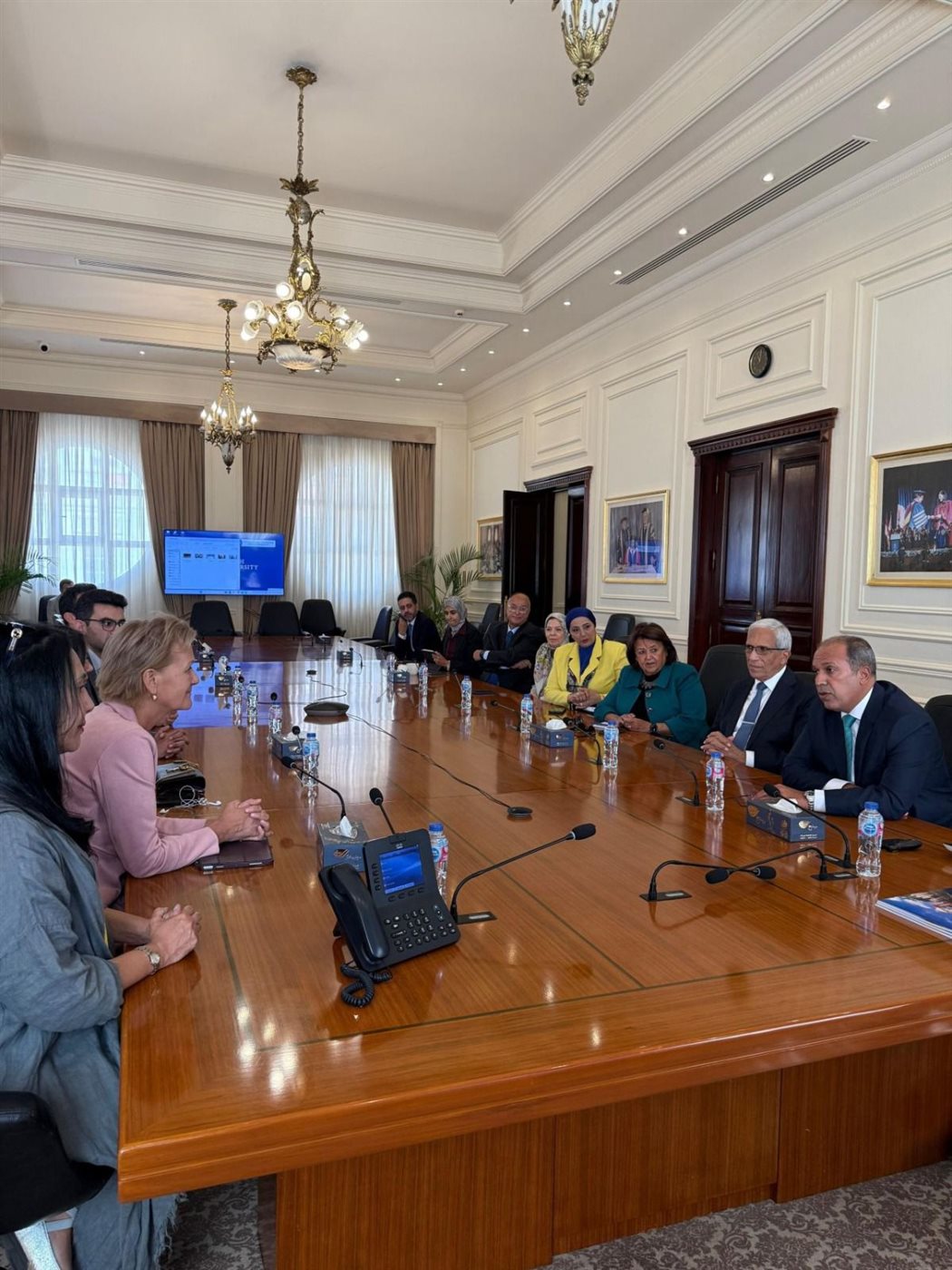 وأوضح، أن الجامعة تٌعد أول مؤسسة جامعية توقع بروتوكول تعاون مع مبادرة "حياة كريمة"، وتُسيّر قوافل أسبوعية للقرى الأكثر احتياجًا، فضلًا عن مستشفى طب الأسنان بالجامعة والذي يستقبل يوميًا من 800 إلى 1000 مواطن للعلاج المجاني، واختتم رئيس الجامعة معربًا عن سعادته بهذه الزيارة وعن حرص الجامعة لبحث سبل للتعاون المشترك التي تسهم في خدمة طلابها وتعزيز فرصهم الأكاديمية والتدريبية دوليًا، انطلاقًا من إيمانها بدور الشراكات الدولية في بناء جيل يمتلك وعيًا عالميًا وقدرة حقيقية على الإسهام في تحقيق التنمية المستدامة. وتأتي هذه الزيارة كفرصة لتعميق الحوار وتبادل الخبرات، بما يدعم مسيرة الجامعة في ترسيخ التعليم الدولي الذي يجمع بين الريادة الأكاديمية والمسؤولية المجتمعية.