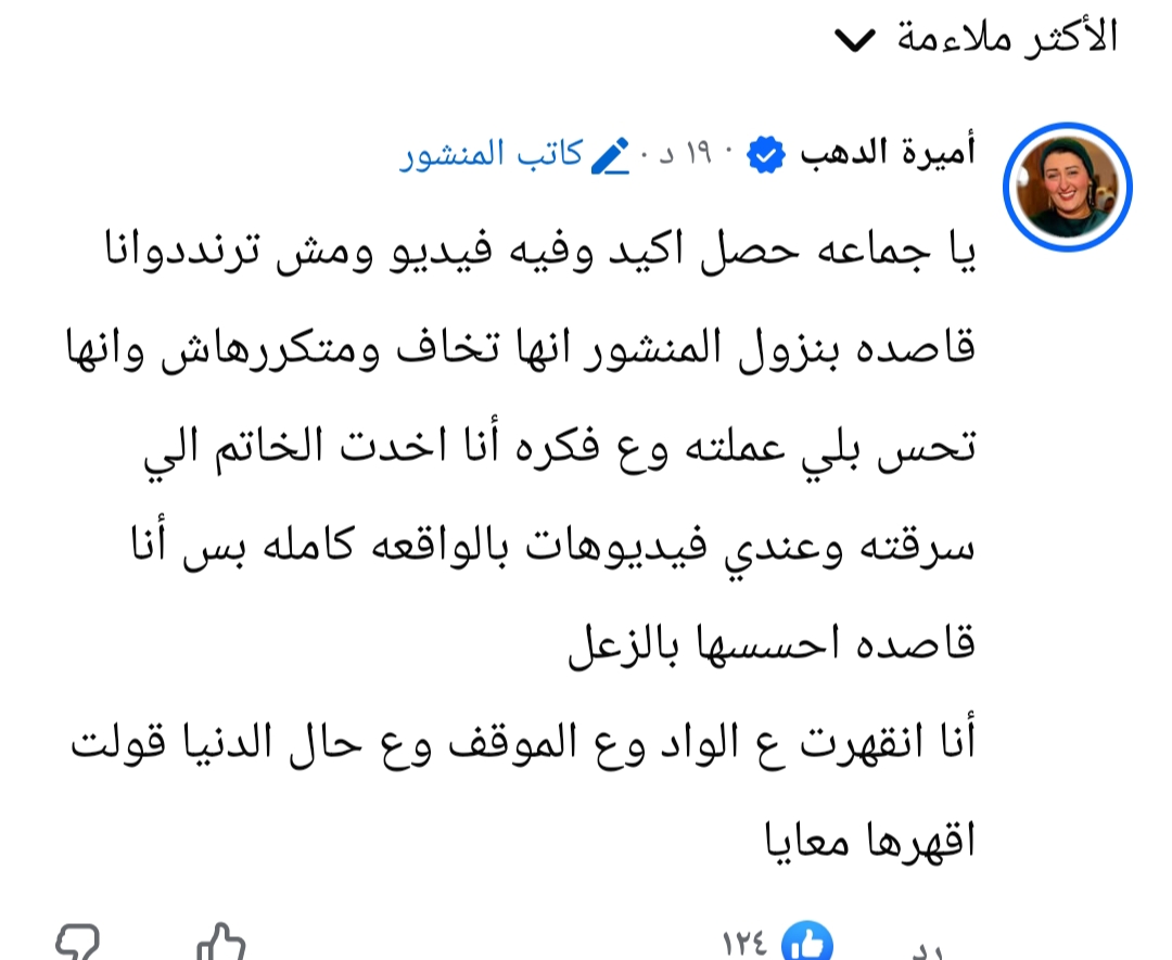 نشرت مالكة محل مجوهرات "أميرة الذهب" منشورًا عبر صفحتها الشخصية على موقع التواصل الاجتماعي فيسبوك بتعرضها للسرقة.
