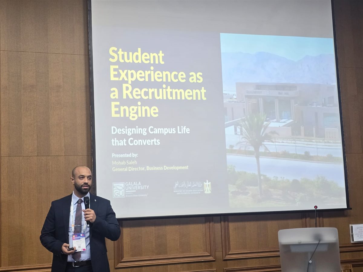 كما تميزت مشاركة الجامعة هذا العام بتمثيل مهاب صالح، المدير العام لتطوير الأعمال بجامعة الجلالة، الذي كان المتحدث المصري الوحيد على منصة القمة، حيث قدّم عرضًا بعنوان: "تجربة الطالب كمحرّك للتسجيل: تصميم حياة جامعية تدفع نحو الالتحاق"، يعكس نهج جامعة الجلالة في التركيز على محورًا استراتيجيًا لتعزيز تجربة الطالب، من خلال تطوير برامج تفاعلية للطلاب المحتملين قبل الالتحاق بالجامعة.
