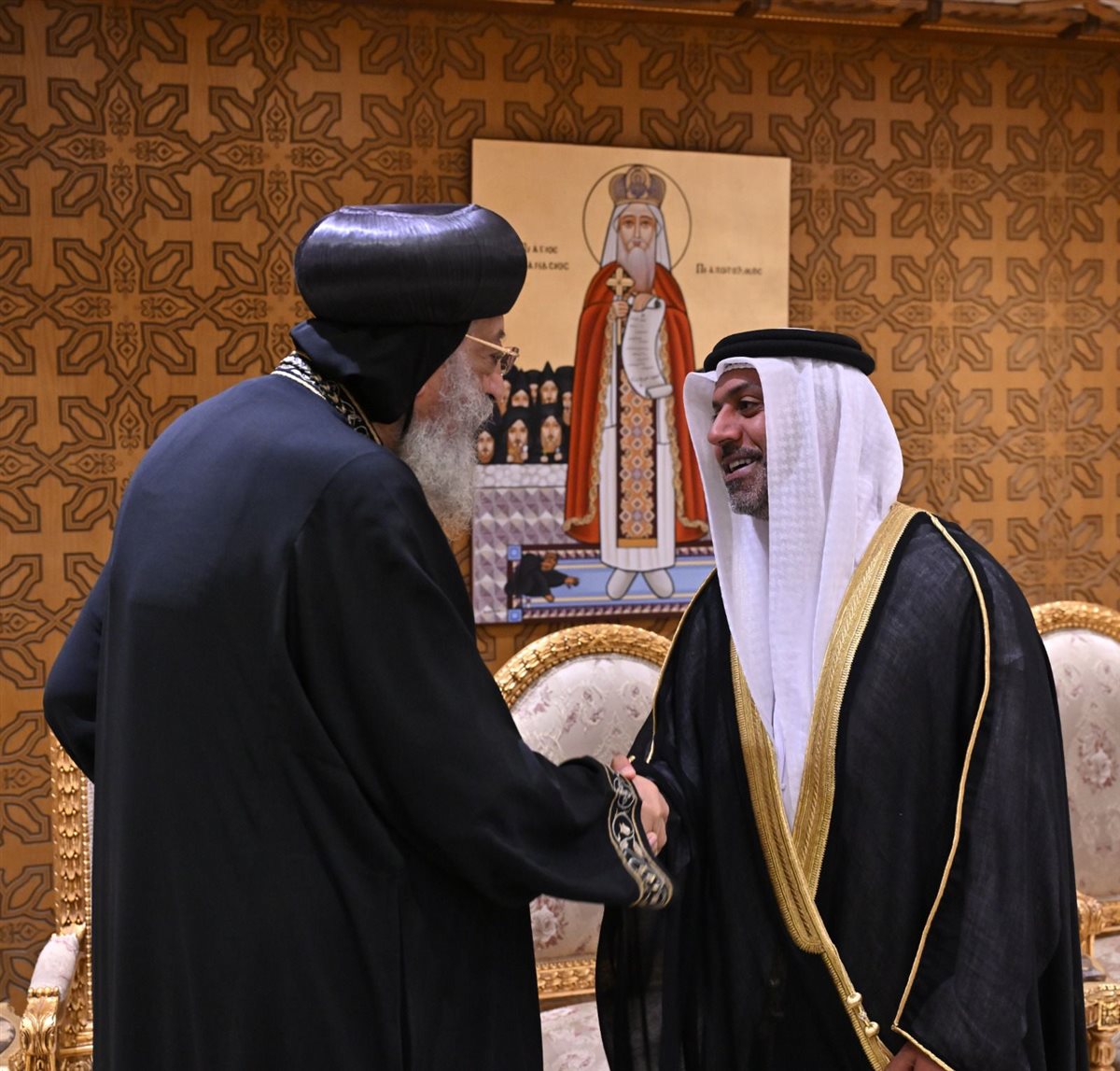 وأشاد بجهود قداسة البابا تواضروس الثاني في تعزيز ثقافة الحوار والسلام بين الأديان، وترسيخ روح الانسجام والتقارب بين الشعوب، مشيرًا إلى أن هذه الجهود تتكامل مع رؤية دولة الإمارات التي جعلت من التسامح والتعايش ركائز أساسية في نهجها الحضاري ورسالتها الإنسانية لبناء عالم يسوده الاحترام.