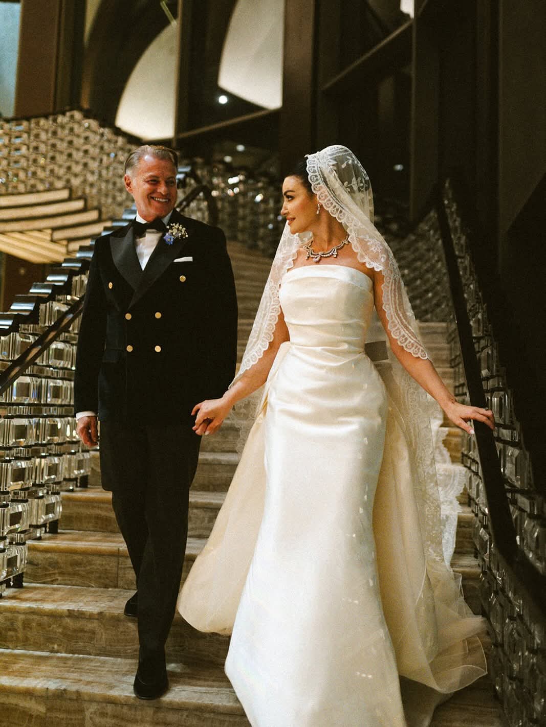 وارتدت أروى فستان زفاف ناعمًا بتطريزات دقيقة أبرزت جمالها المعتاد، بينما ظهر زوجها بإطلالة كلاسيكية أنيقة، ليشكل الثنائي لوحة رومانسية أبهرت المتابعين.