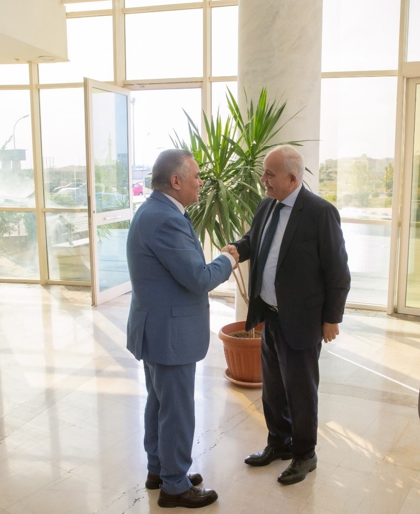 التقي الدكتور رضا حجازي رئيس جامعة الريادة للعلوم والتكنولوجيا الدكتور أشرف حنيجل رئيس جامعة السويس في مكتبه لبحث التعاون المشترك بين الجامعتين من خلال بروتوكول يعزز الشراكة العلمية والبحثية وتبادل الخبرات في مجالات تطوير البرامج الأكاديمية وتنفيذ مشروعات مشتركة تخدم المجتمع وتواكب متطلبات سوق العمل والعمل علي رفع كفاءة قدرات أعضاء هيئة التدريس.