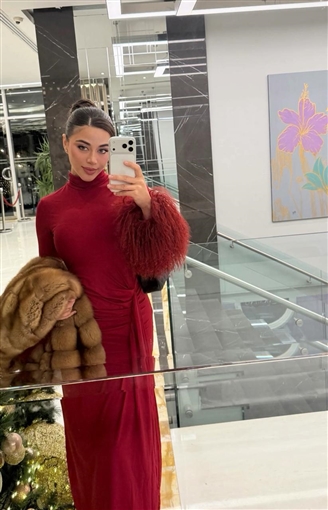 ولم تكتفِ يارا بتصميم الفستان فقط، بل أضافت لمسة فاخرة من خلال الأكمام المزينة بتفاصيل ناعمة من الريش، ما منح الإطلالة بعدًا عصريًا جريئًا، وجعلها مختلفة عن الإطلالات التقليدية المعتادة في مناسبات أعياد الميلاد. هذا الاختيار الذكي عكس وعيها بأحدث صيحات الموضة، مع الحفاظ على هويتها الأنيقة.