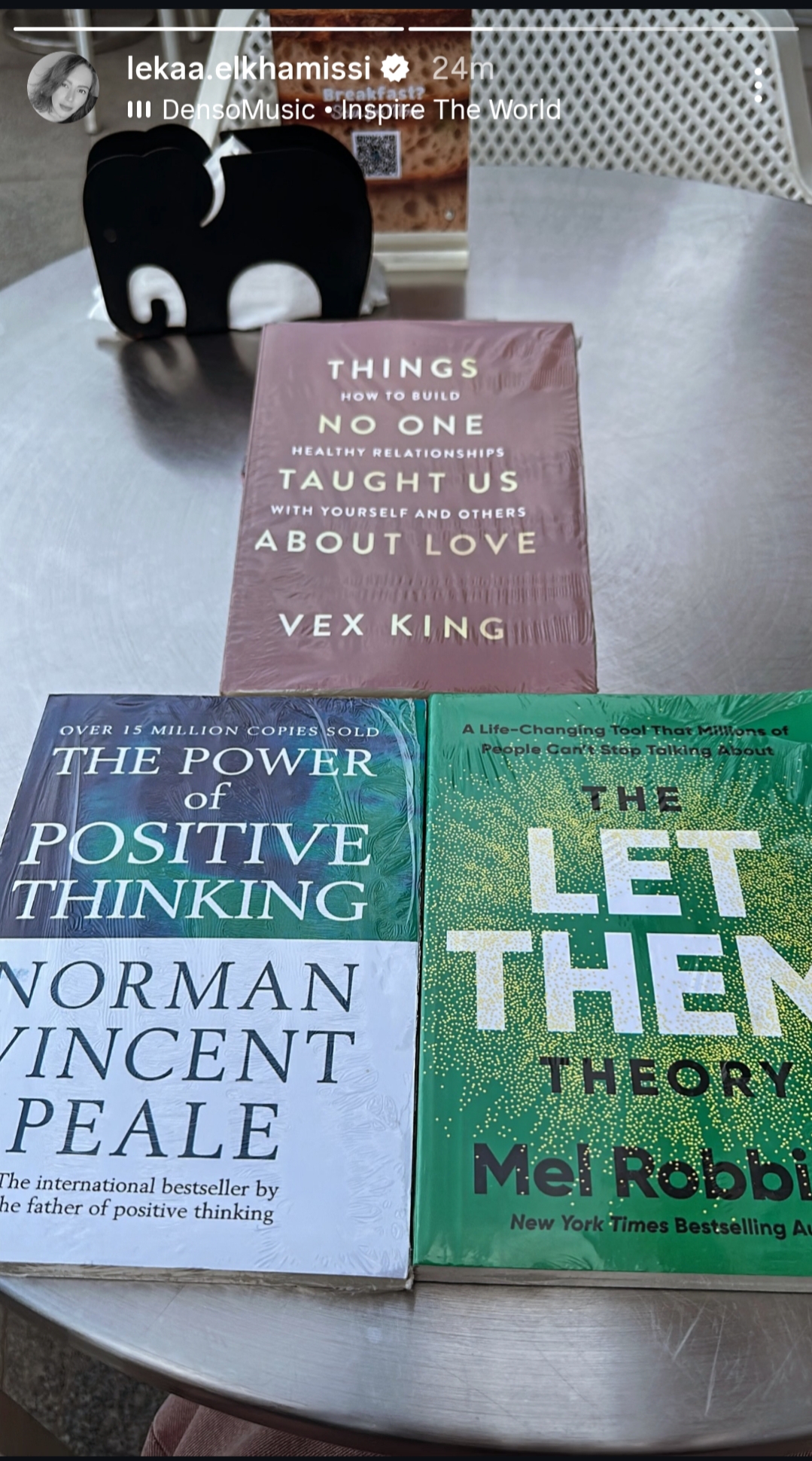 ونشرت لقاء الخميسي عبر خاصية الاستوري صورة لثلاث كتب تستمتع بقراءتهم متجاهلة الرد تماما عن انفصال زوجها عن إيمان الزيدي ،مما أثار حيرة ودهشة متابعيها.