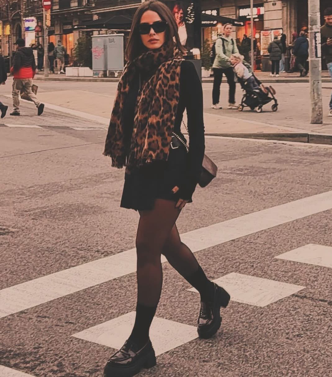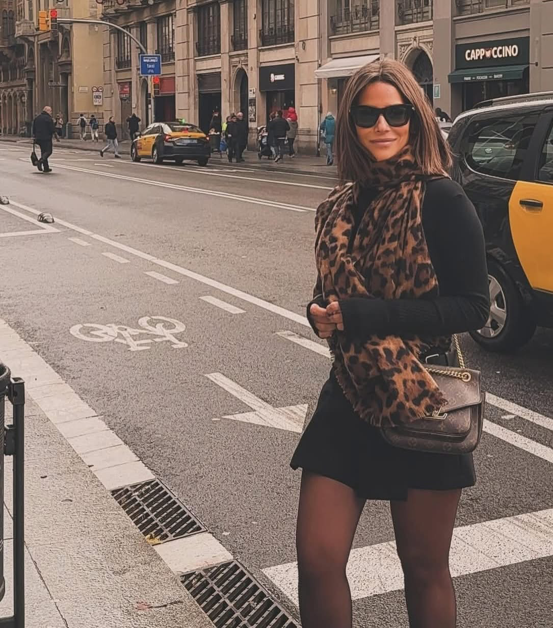 وظهرت إيمان العاصي، باطلالة ملفتة مرتدية فستانا قصير فوق الركبة باللون الأسود ونسقت معه سكارف تايجر كشفت عن أناقتها وقوامها الممشوق.