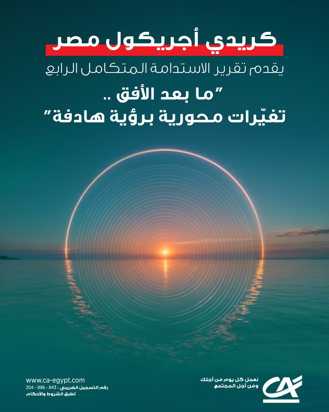 أعلن بنك كريدي أجريكول مصر عن إصدار تقريره الرابع عن الاستدامة تحت عنوان "ما وراء الأفق: تحولات مدفوعة بالهدف"، في خطوة تؤكد التزام البنك المستمر بالممارسات المصرفية المسؤولة، والنمو المستدام، والشفافية تجاه عملائه وموظفيه والمجتمع ككل.