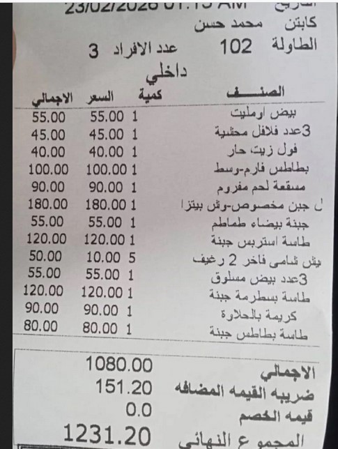 فول وطعمية بـ 1230.. فاتورة سحور تثير الجدل على فيس بوك
