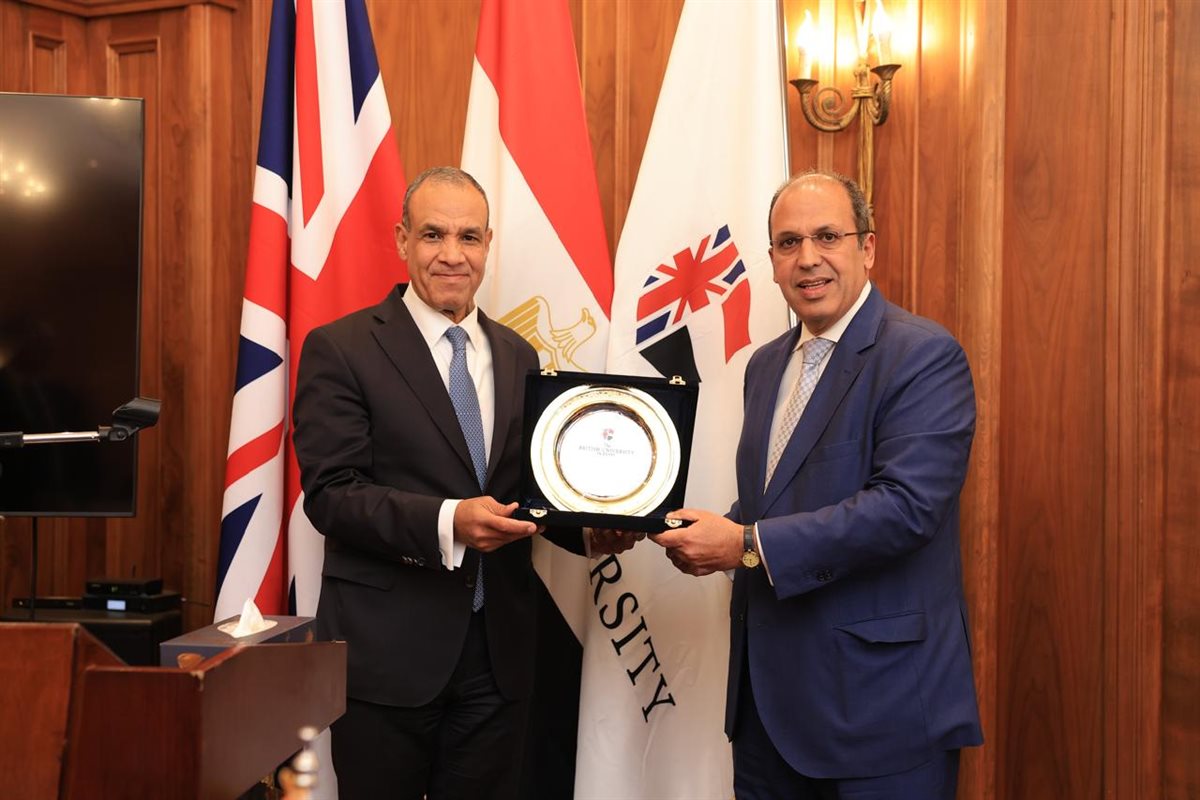 في ختام اللقاء، قدّم الأستاذ الدكتور محمد لطفي، رئيس الجامعة البريطانية في مصر، درع الجامعة إلى معالي وزير الخارجية، تقديرًا لجهوده المتواصلة في تعزيز السياسة الخارجية المصرية وترسيخ مكانة مصر على الساحة الدولية.