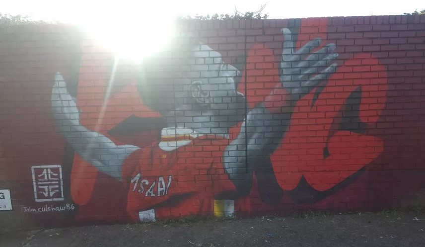 الجدارية التي صممها فنانون محليون، جاءت لتخلد مسيرة صلاح الأسطورية مع نادي ليفربول، وتبرز ملامحه وهو يحتفل بأهدافه التي هزت شباك كبار القارة العجوز.
