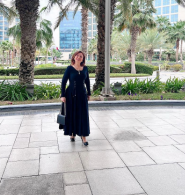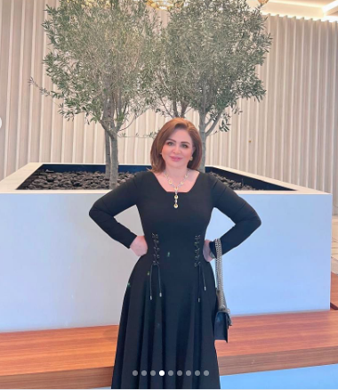 تألقت إلهام شاهين في الصور بإطلالة كشفت عن رشاقتها، حيث ارتدت فستان طويل ذا أكمام طويلة واتسم التصميم باللون الأسود المزين ببعض التطريزات البسيطة.