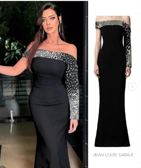 خطفت رضوى الشربيني الأنظار بأناقتها، حيث ظهرت مرتدية فستان طويل اتسم بصيحة الكم الواحد التي تتصدر أحدث صيحات الموضة، واتسم التصميم باللون الأسود الذي حمل بعض التطريزات.