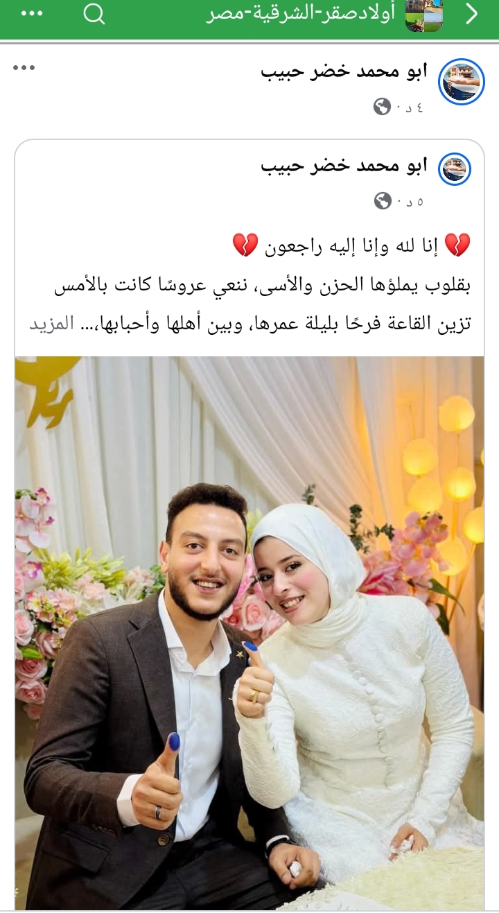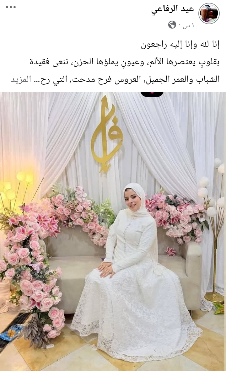 وتحوّلت منصات التواصل الاجتماعي إلى ساحات عزاء ونعي، حيث نعاهـا أصدقاؤها ورواد السوشيال ميديا، واصفين إياها بـ«عروس الجنة»، وسط حالة من الصدمة والحزن على رحيلها المفاجئ في ليلة زفافها.